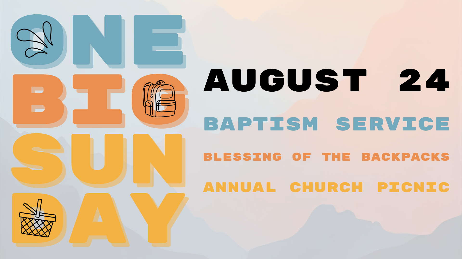 Celebrate baptisms during service, cover our students (and their backpacks!) in prayer as they head into a new school year, and stay for our annual church picnic!